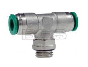 Branch tee push in fitting with bsp parallel or taper threads and suitable for metric outside diameter tubing 4mm to 12mm